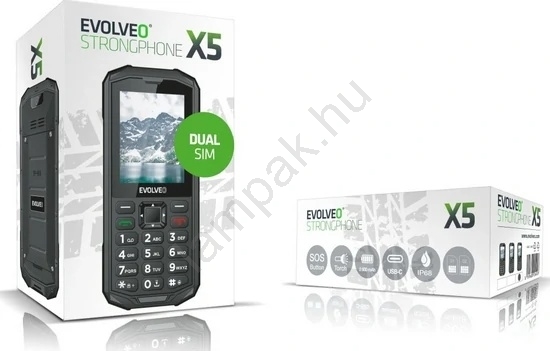 Evolveo - StrongPhone X5, vízálló Dual SIM-es mobiltelefon, fekete-szürke