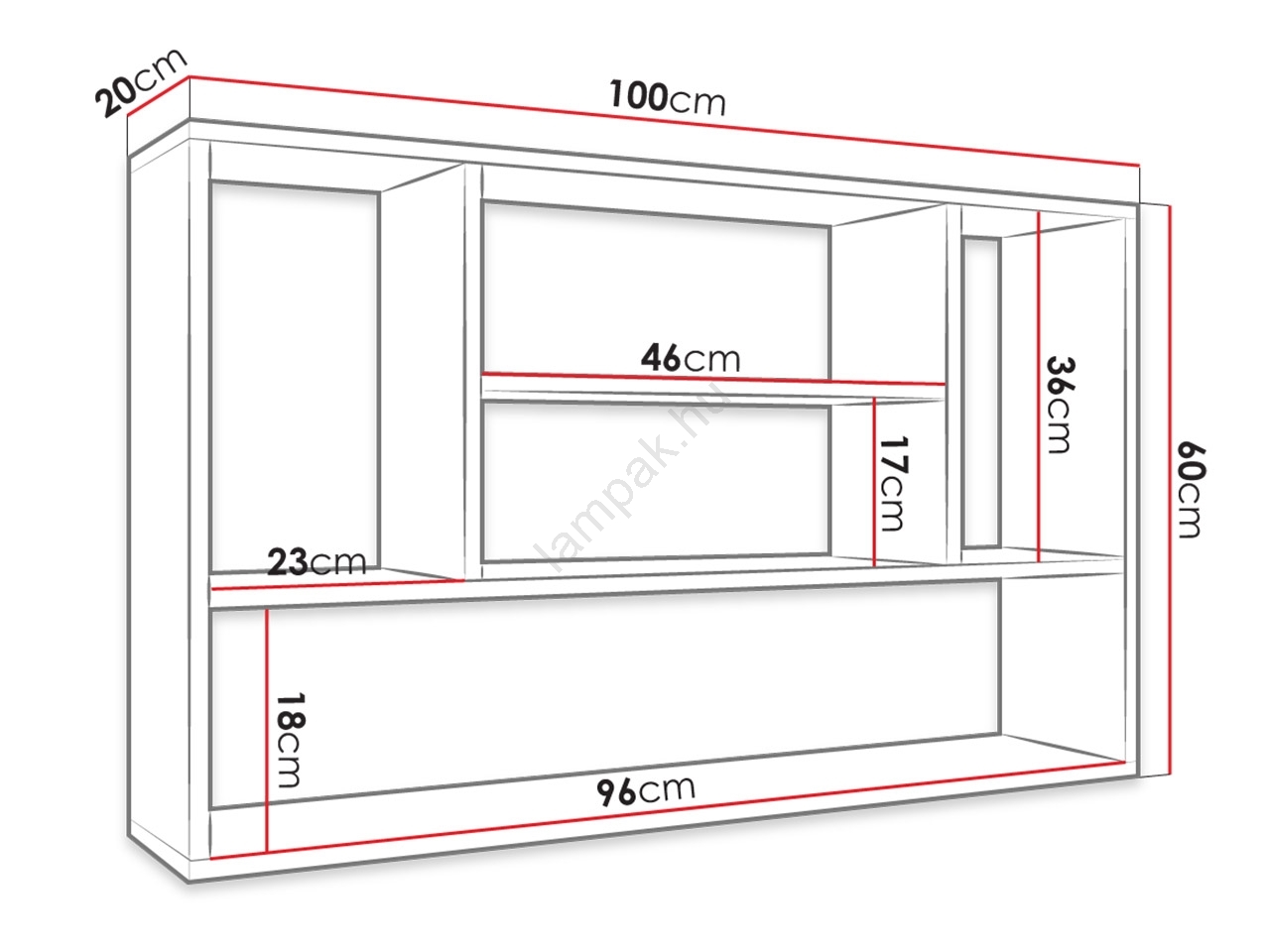 • Fali polc a könyvek, dekorációk és sok más kiállítására.