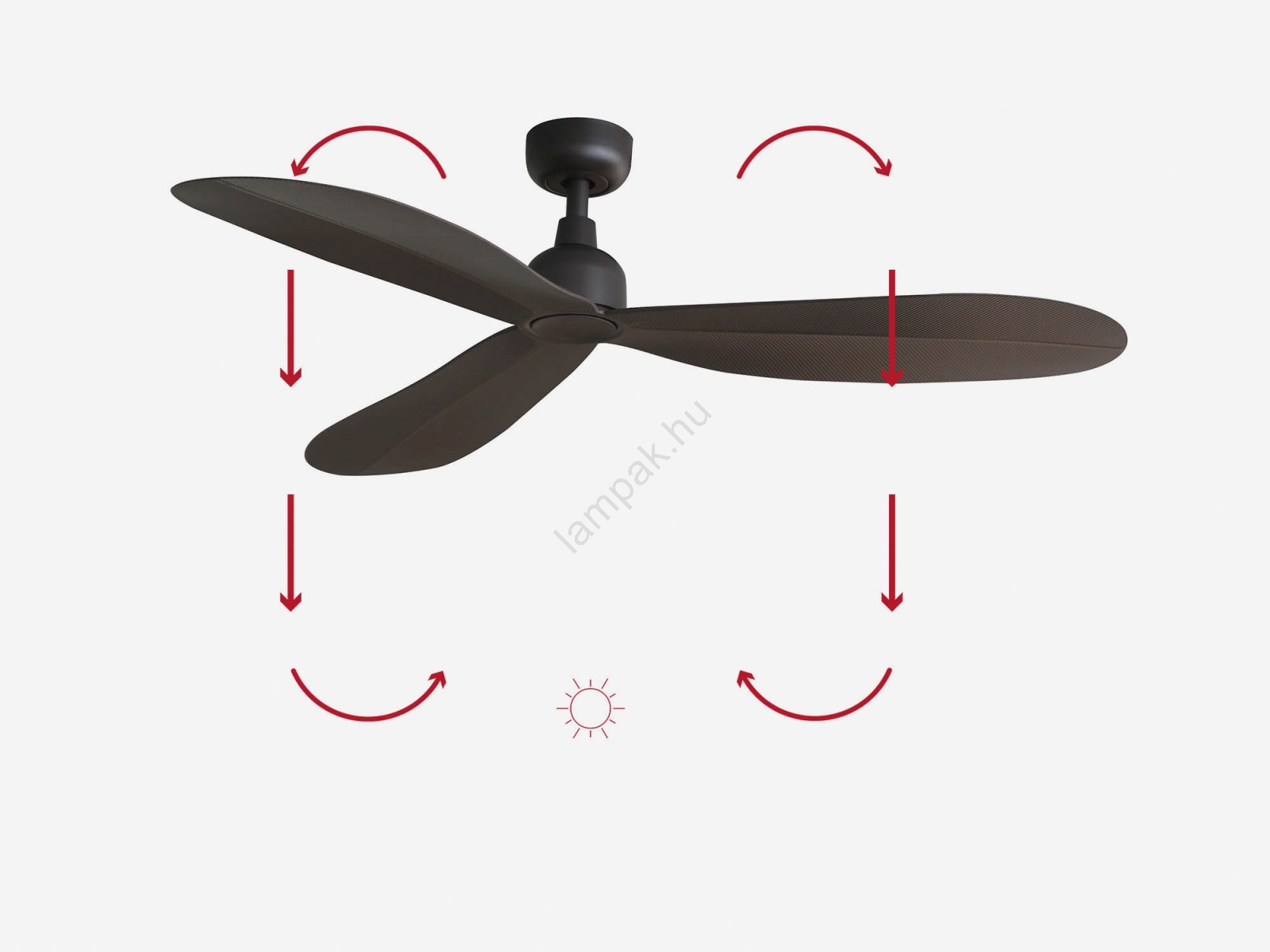 • Ez a ventilátor nyári-téli visszafordító funkcióval rendelkezik, így télen is használható (a fűtési költségek akár 20%-os megtakarítása télen).