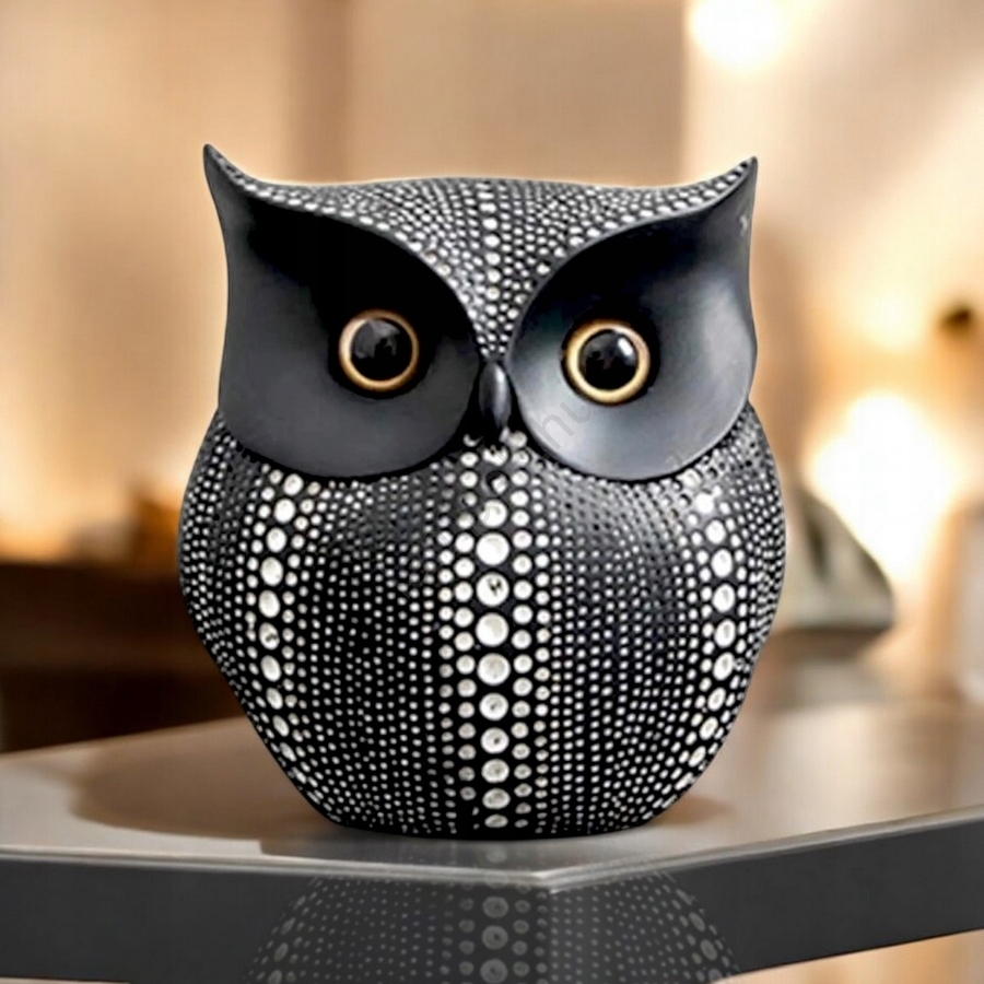 • Elegáns, minimalista fekete bagolydísz.
