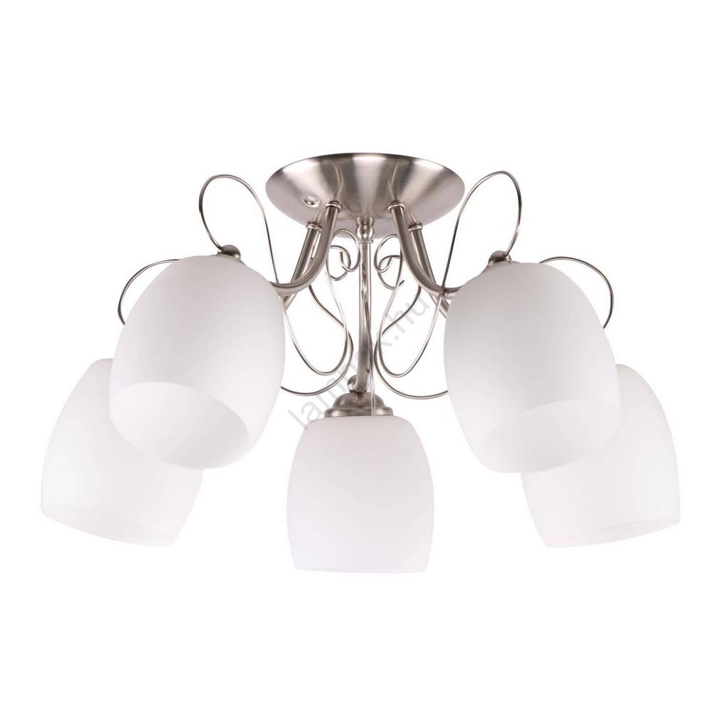A Felületre szerelhető csillár AMBA 5xE27/40W/230V a szép és funkcionális dizájn jellemzi.  A világításhoz egy E27 aljzattal ellátott izzó alkalmas. Itt további izzókat vásárolhat kedvező áron. Érdekes kiegészítője lesz otthonának.