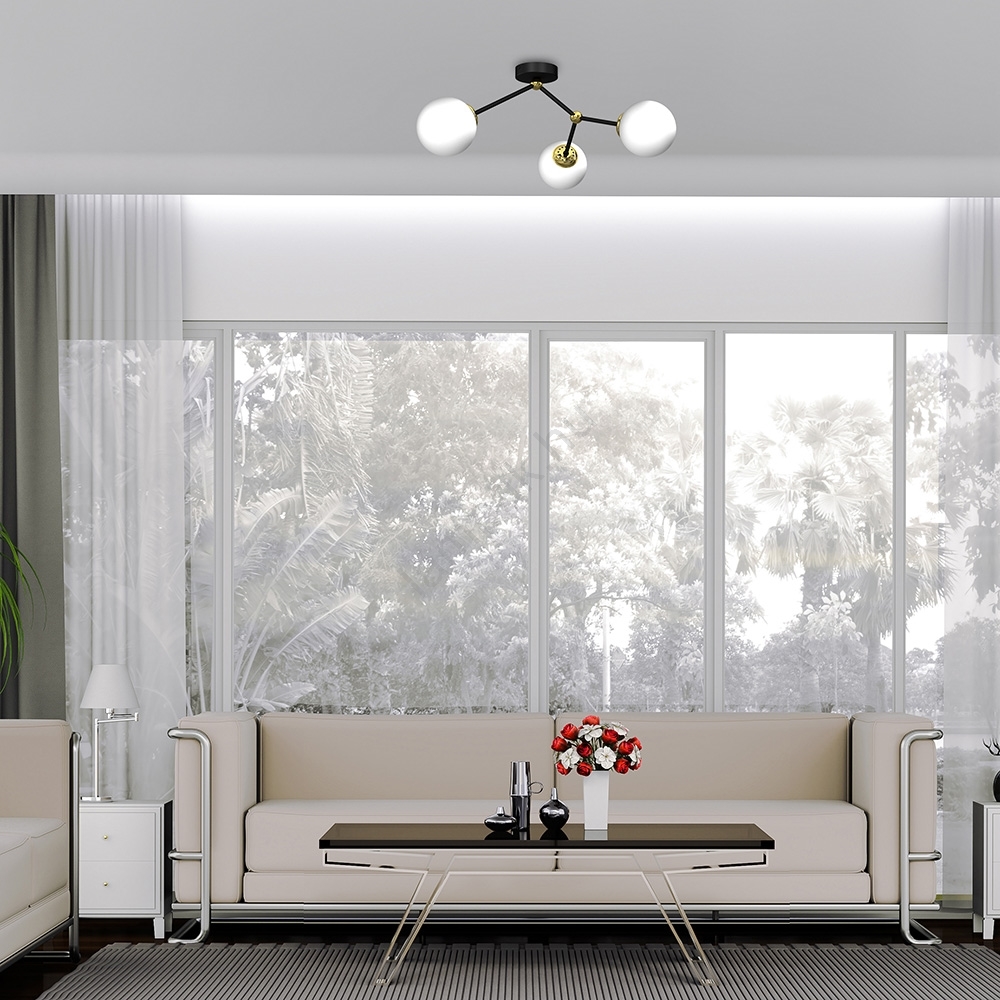 A Felületre szerelhető csillár JOY 3xE14/40W/230V fekete/arany a szép és funkcionális dizájn jellemzi.  A világításhoz egy E14 aljzattal ellátott izzó alkalmas. Itt további izzókat vásárolhat kedvező áron. Érdekes kiegészítője lesz otthonának.