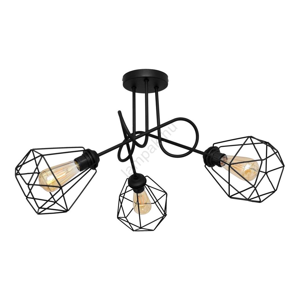 A Felületre szerelhető csillár KARO 3xE27/15W/230V fekete a szép és funkcionális dizájn jellemzi.  A világításhoz egy E27 aljzattal ellátott izzó alkalmas. Itt további izzókat vásárolhat kedvező áron. Érdekes kiegészítője lesz otthonának.