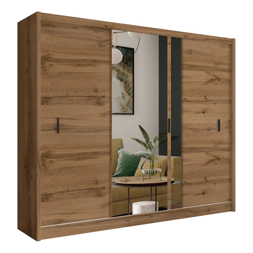 • SABRINA gardróbszekrény tükörrel, 250x215 cm, woltan tölgy