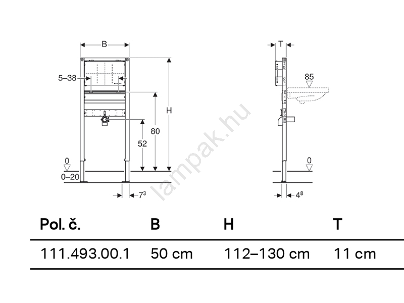 Geberit 111.493.00.1 - Duofix falba építhető modul függesztett mosdóhoz 112-130 cm