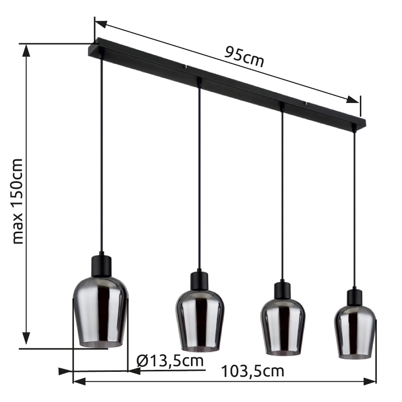 Globo - Csillár zsinóron 4xE27/40W/230V fekete