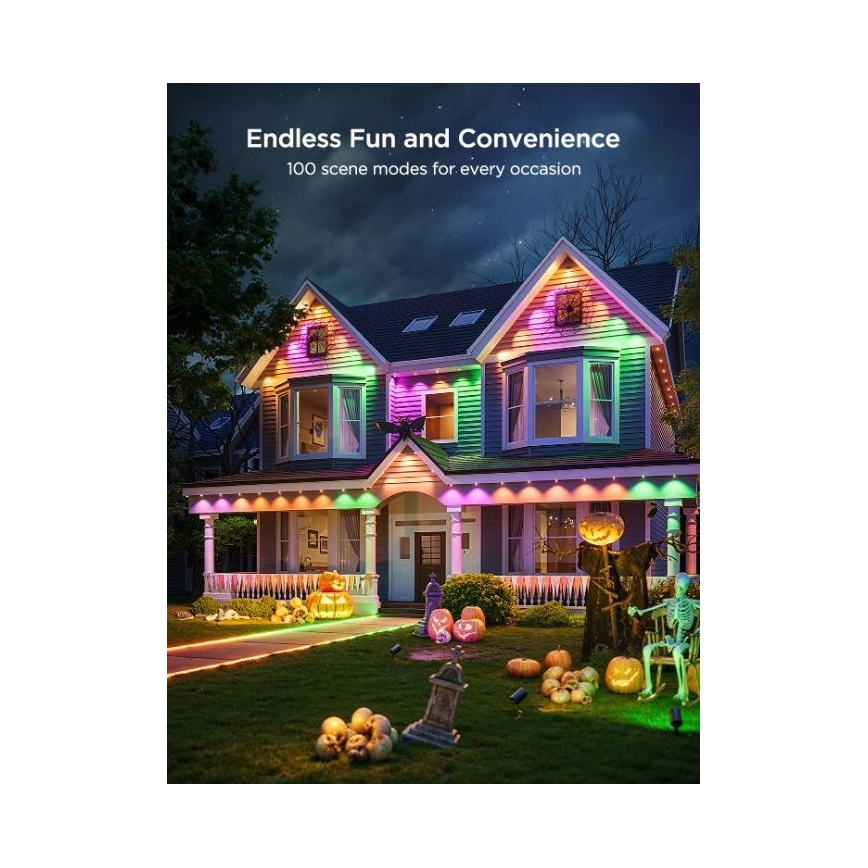 • A Govee állandó kültéri világítás megbízható és stílusos megoldás, amely bármilyen külső teret lenyűgöző fényjátékká varázsol.