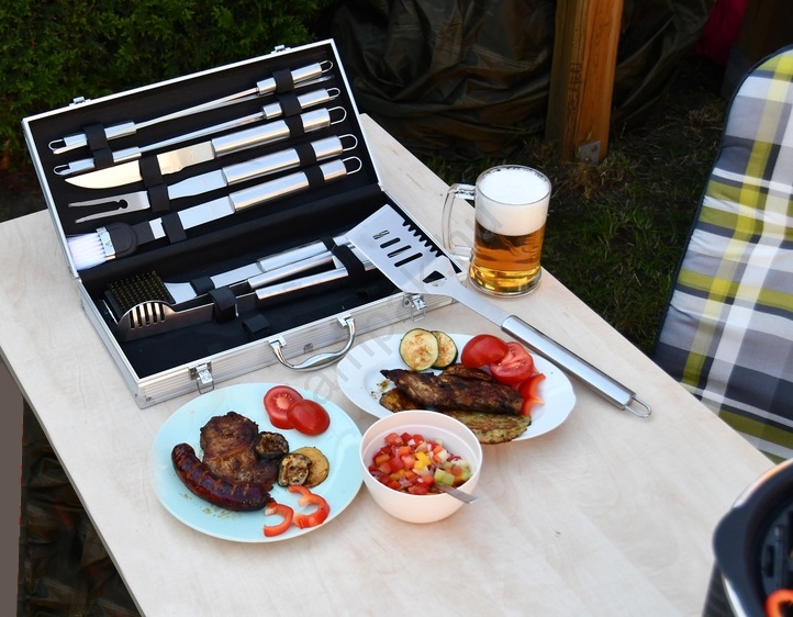 Grillező eszközök rozsdamentes acél tokkal 18 db