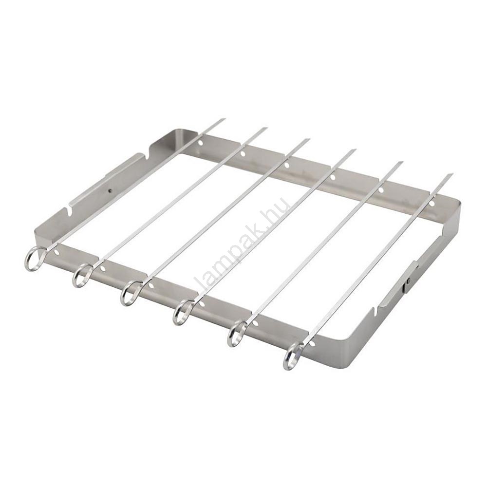 • A rozsdamentes acél keret mérete 35 x 25 cm, használatával jelentősen megkönnyíthető az egyes nyársak forgatása a készítés során.