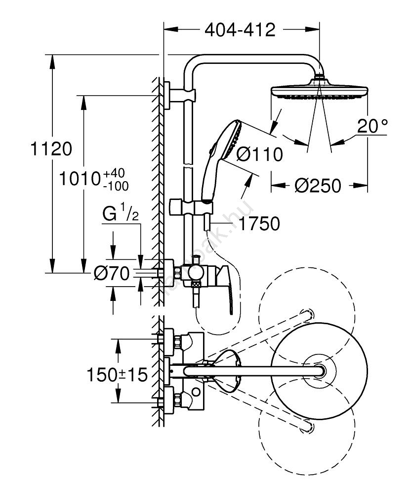 • GROHE Vitalio Start 250 zuhanyrendszer egykarú csapteleppel, egyszerű fali felszereléshez.