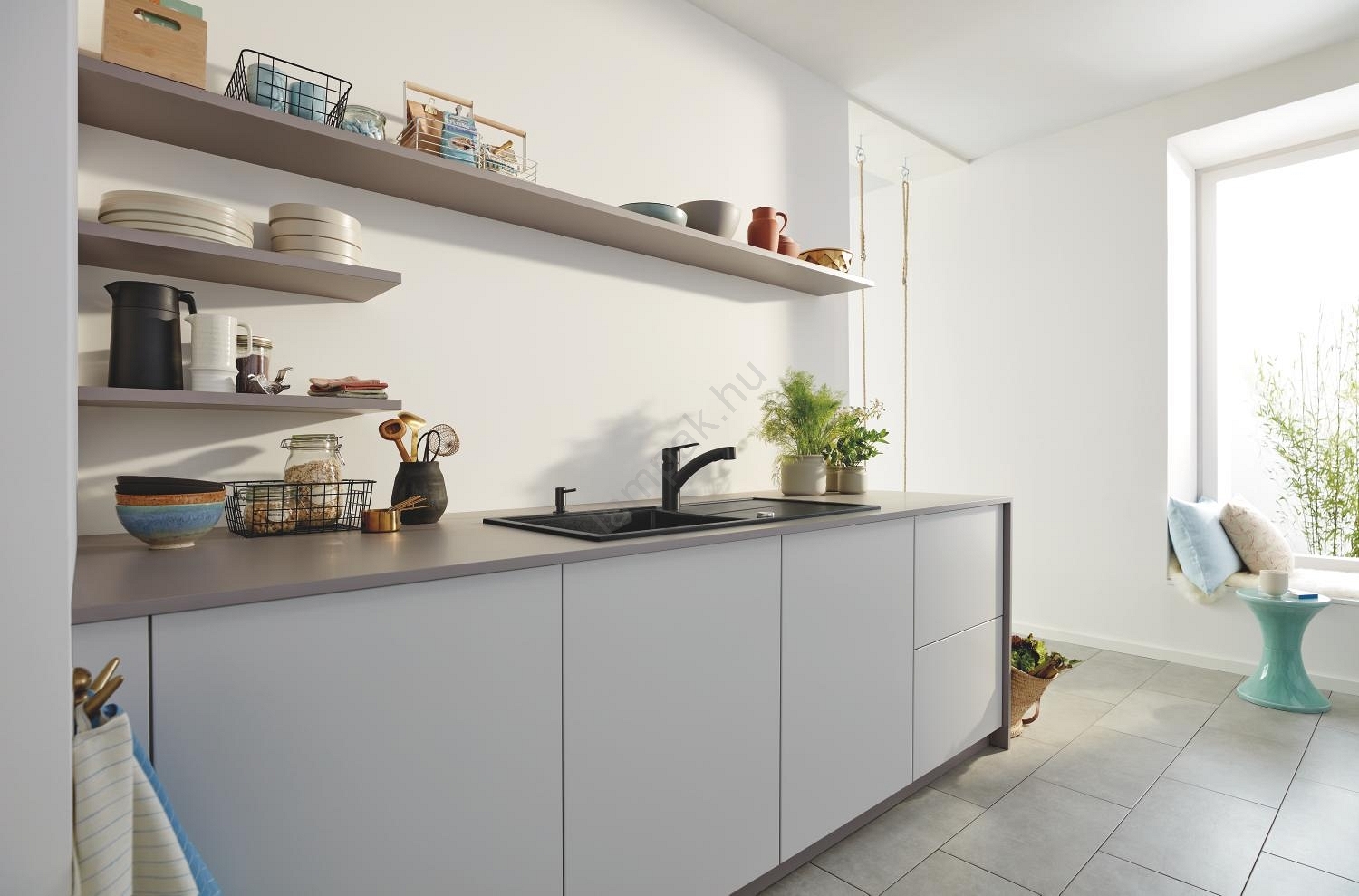 • Elegáns matt fekete kivitel, amely modern megjelenést kölcsönöz konyhájának.