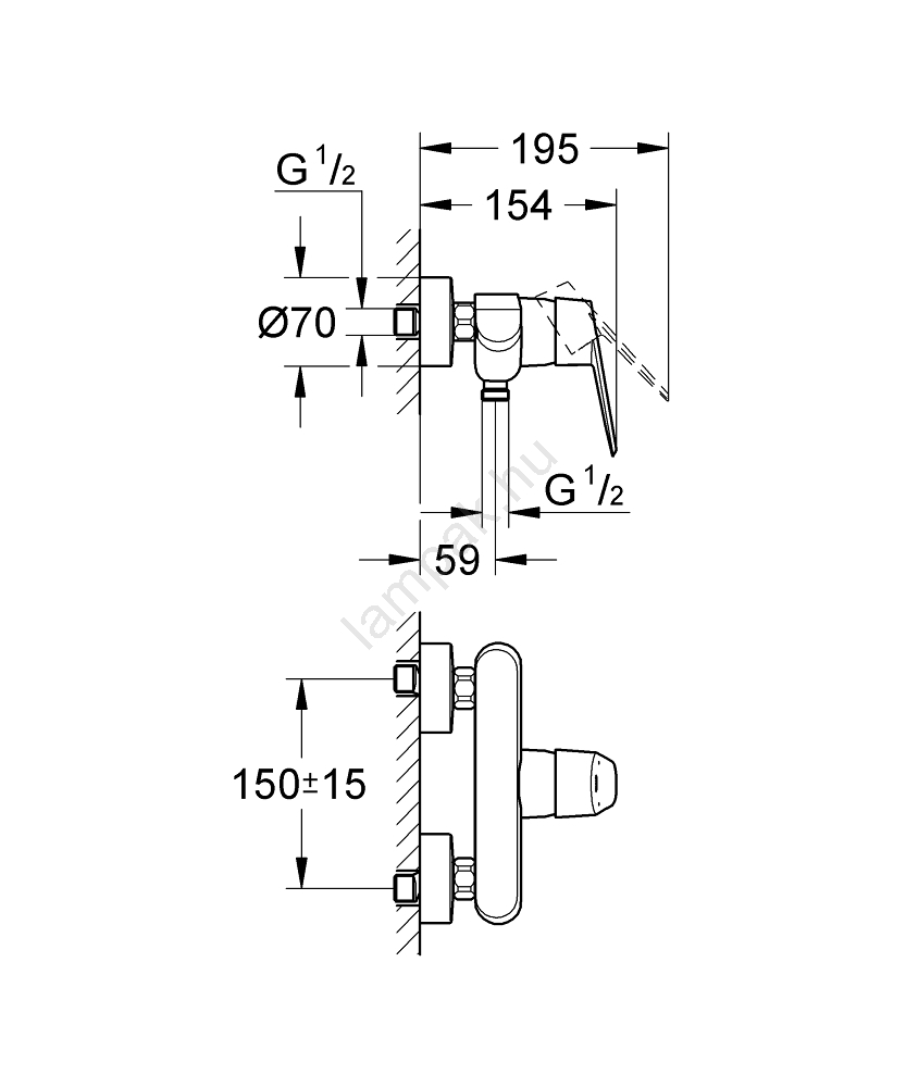 • Falra szerelhető egykaros zuhanycsaptelep a gyors és egyszerű telepítéshez.
