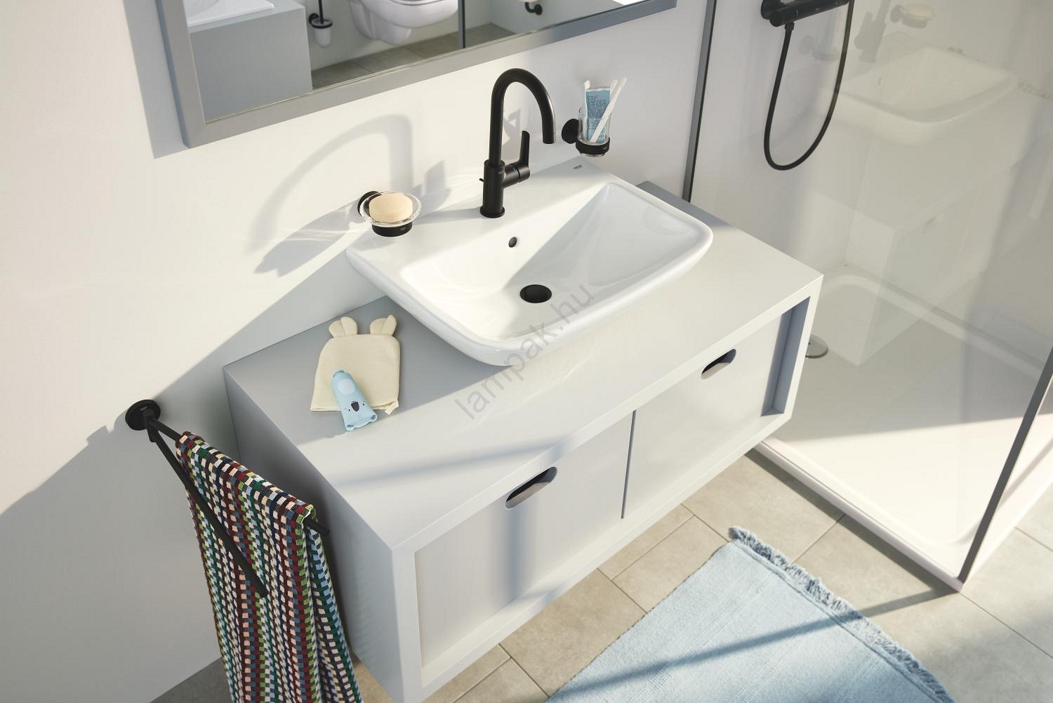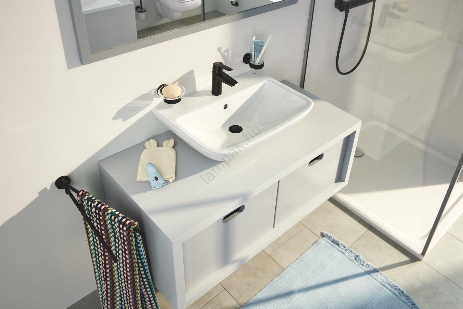 • A GROHE Start sorozat része az egységes fürdőszobai megjelenésért.