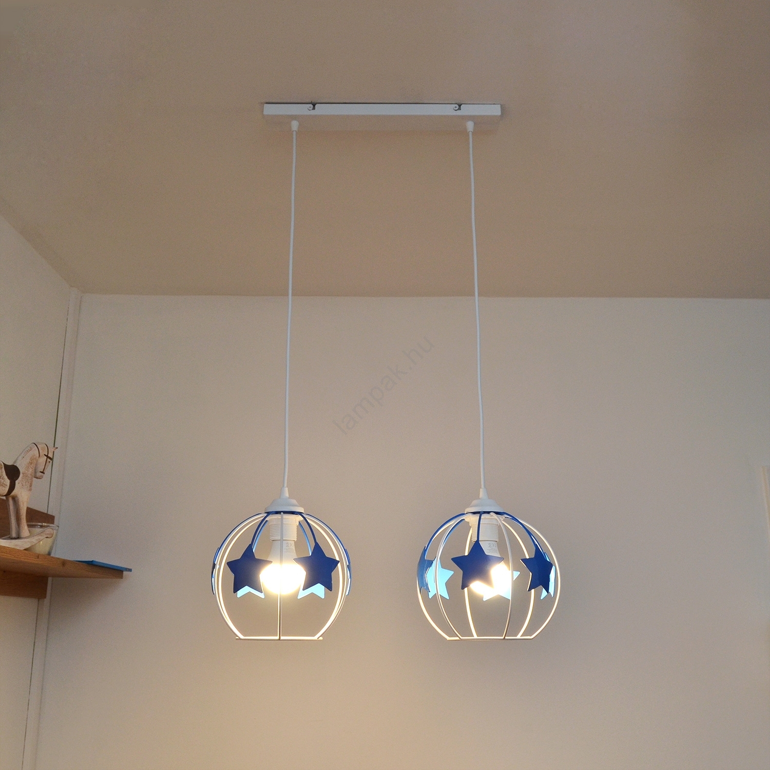 Gyerek csillár zsinóron STARS 2xE27/15W/230V kék/fehér