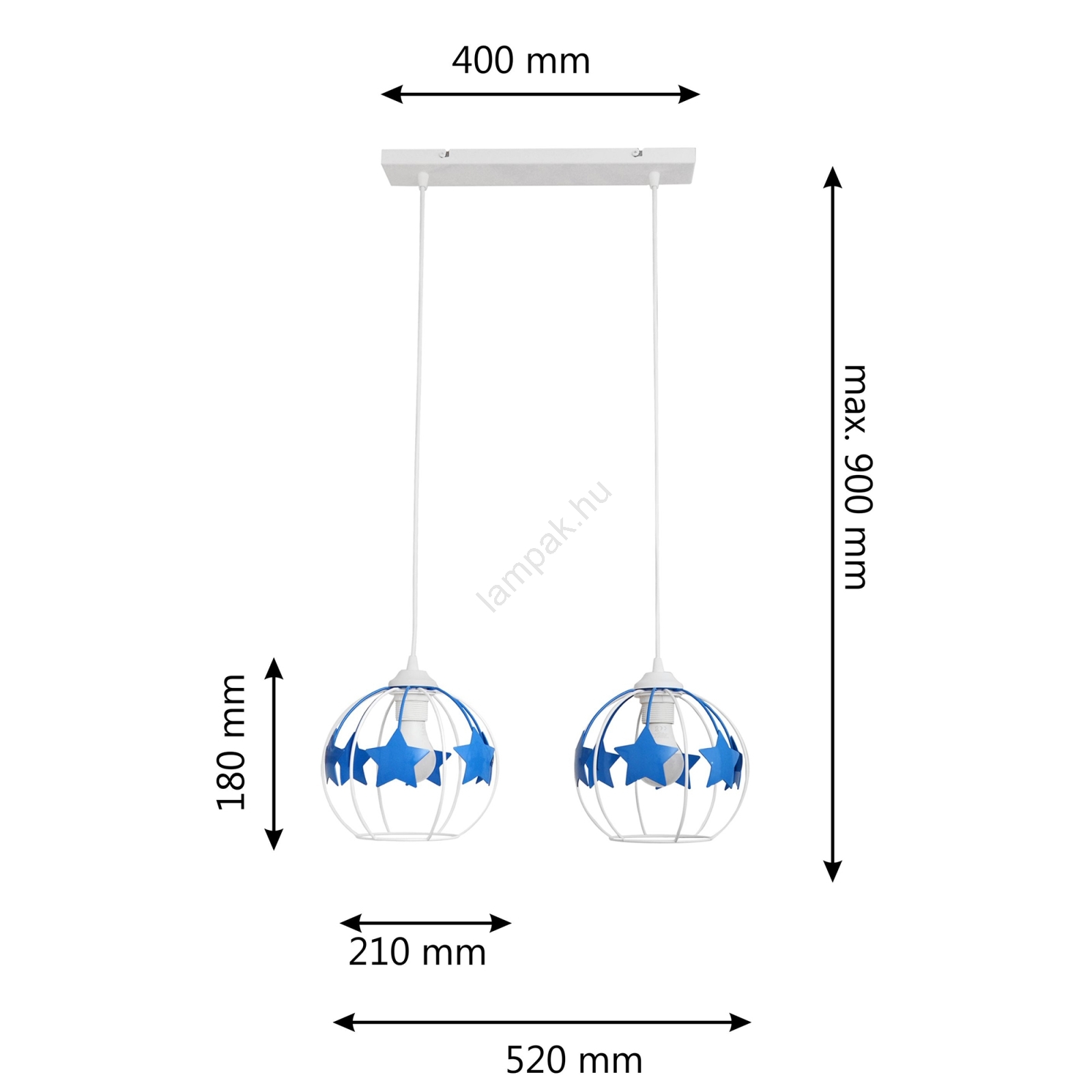 A Gyerek csillár zsinóron STARS 2xE27/15W/230V kék/fehér a szép és funkcionális dizájn jellemzi.  A világításhoz egy E27 aljzattal ellátott izzó alkalmas. Itt további izzókat vásárolhat kedvező áron. Érdekes kiegészítője lesz otthonának.