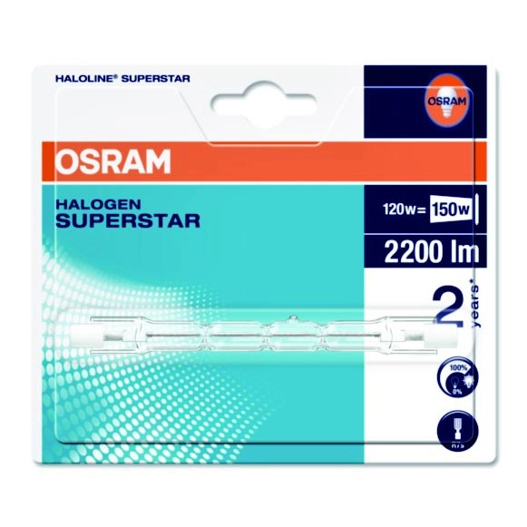 A Halogén izzó SUPERSTAR R7s/120W/230V 2900K - Osram 118 mm A kiváló minőségű dizájn biztosítja a belső tér tökéletes megvilágítását. A R7s kategória az azonos aljzattal rendelkező izzókra vonatkozik. E-shopunkban választhat hagyományos izzószálas vagy modern LED izzók közül, melyek energiatakarékosabbak és hosszabb élettartamúak.