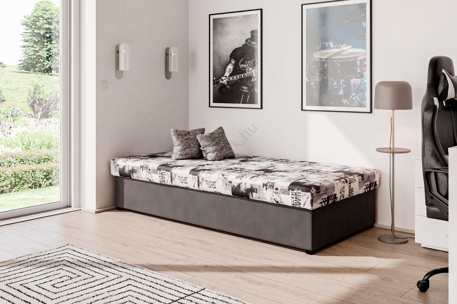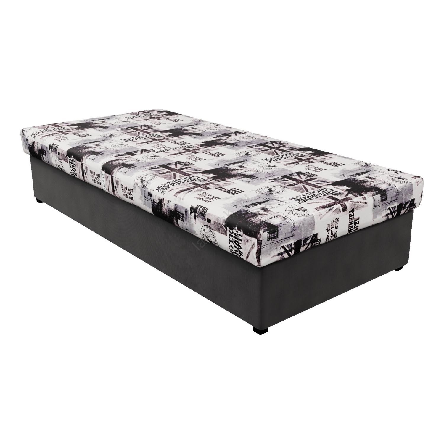 Tárolós ágy NOE 90x200 rugós matraccal, szürke/fekete