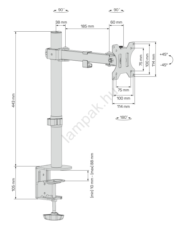 • Teljes támogatott VESA furattávolság lista: 75x75, 100x100.