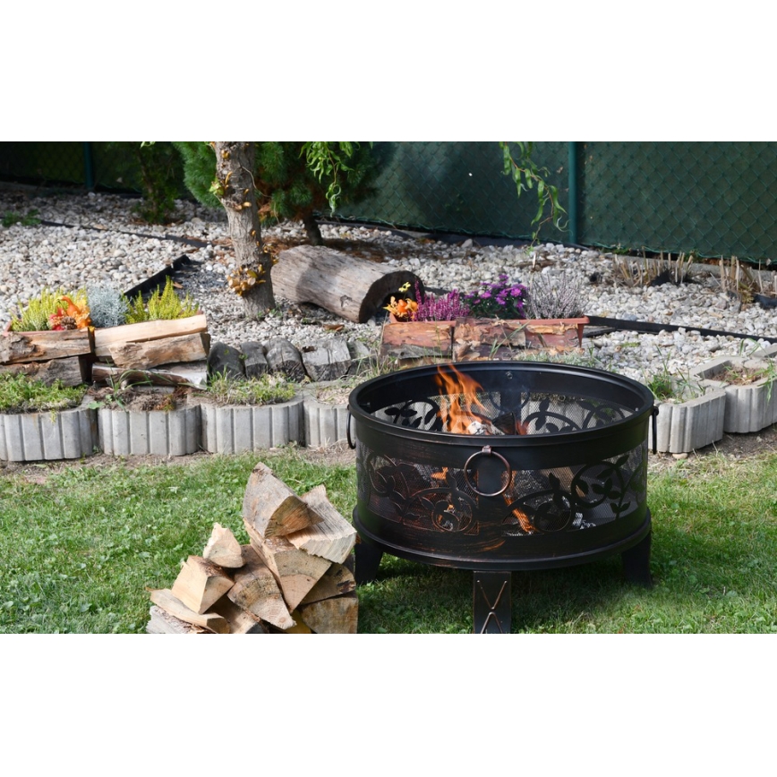 • A tűzrakóhely konstrukciója kiváló minőségű acélból készült, magas hőmérsékletű patinás fekete/réz festékkel.