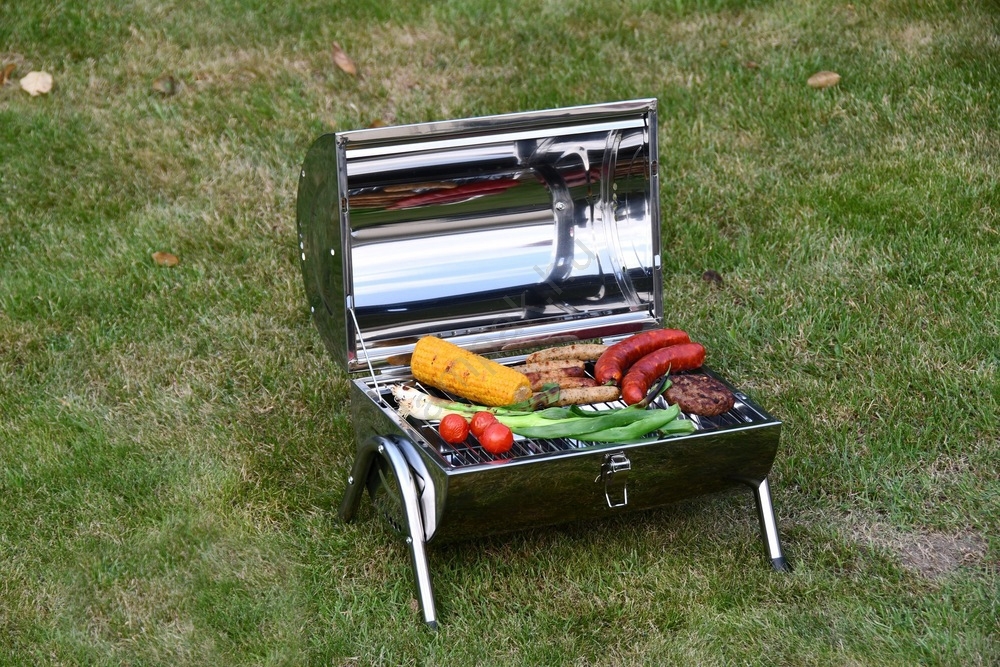 • Modern DOUBLE hordozható grillsütő vonzó króm kialakítással.