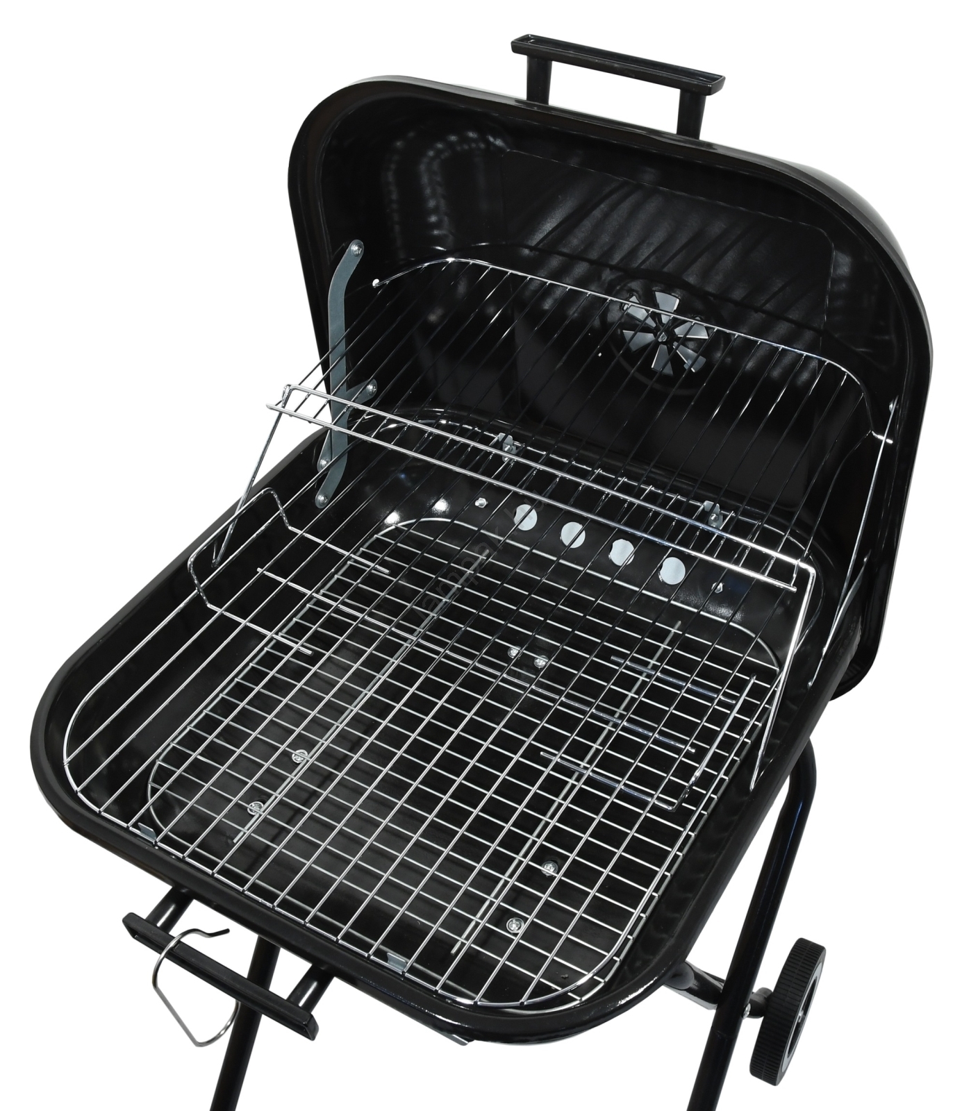 • A grillsütő állítható szellőztetéssel van felszerelve, a finomságok tényleges főzéséhez pedig egy rács és egy krómozott acél tárolórekesz van felszerelve.