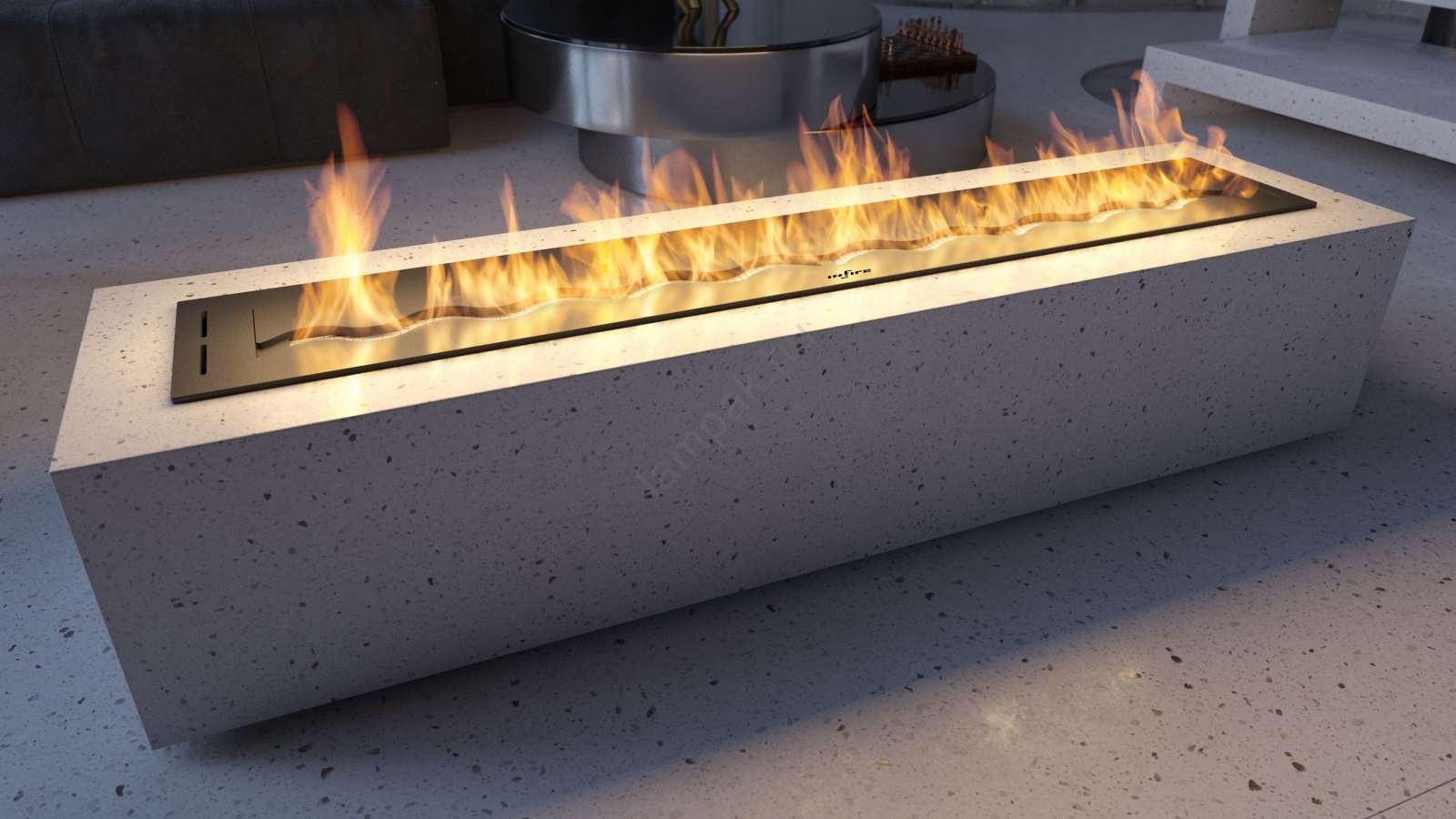 • Egyszerű modern bio-kandalló, amely előre elkészített fülkébe helyezhető.