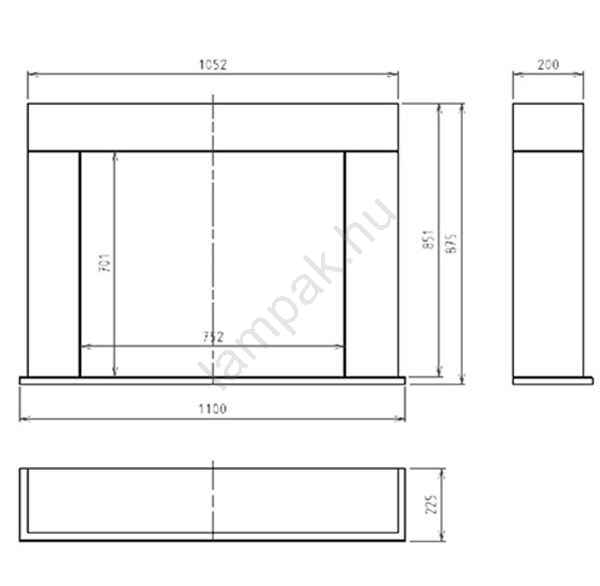 • A kandalló méretei: 87,5 x 110 x 22,5 cm.