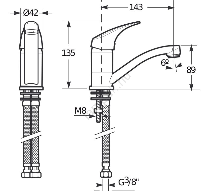 • Egypálcás mosogató csaptelep magas nyomáshoz.