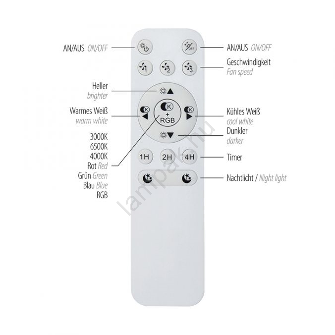A távirányító megjelenése és funkciói a lámpa sorozatától függően eltérőek lehetnek, mert a gyártó folyamatosan törekszik a fejlesztésére.