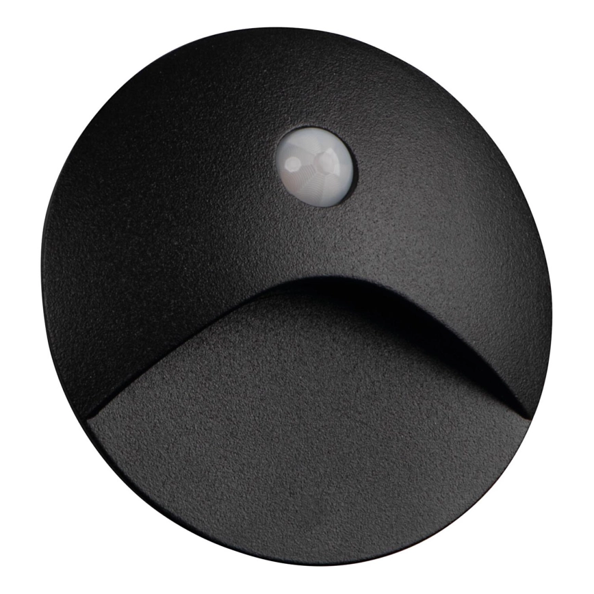 LED lépcsővilágító lámpa mozgás- és alkonyatérzékelővel EXIN LED/2,5W/230V 4000K IP65 fekete kerek
