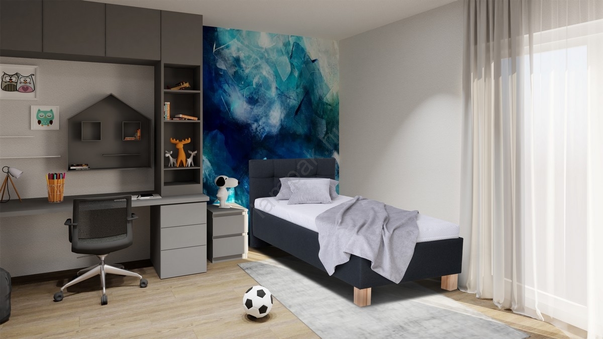 • Kárpitozott ágy MARIA ONE 90x200 cm, matraccal és ágyneműtartóval, szürke
