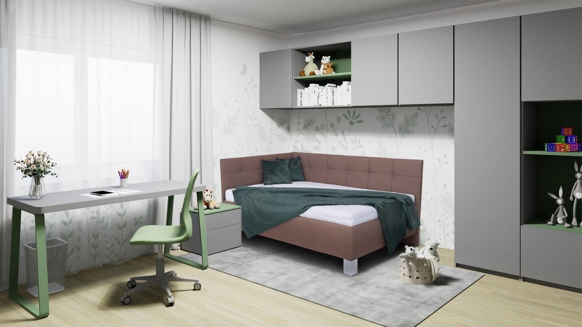 • Kárpitozott ágy MARIA PETITE 120x200 cm, matraccal és tárolóval, szürke