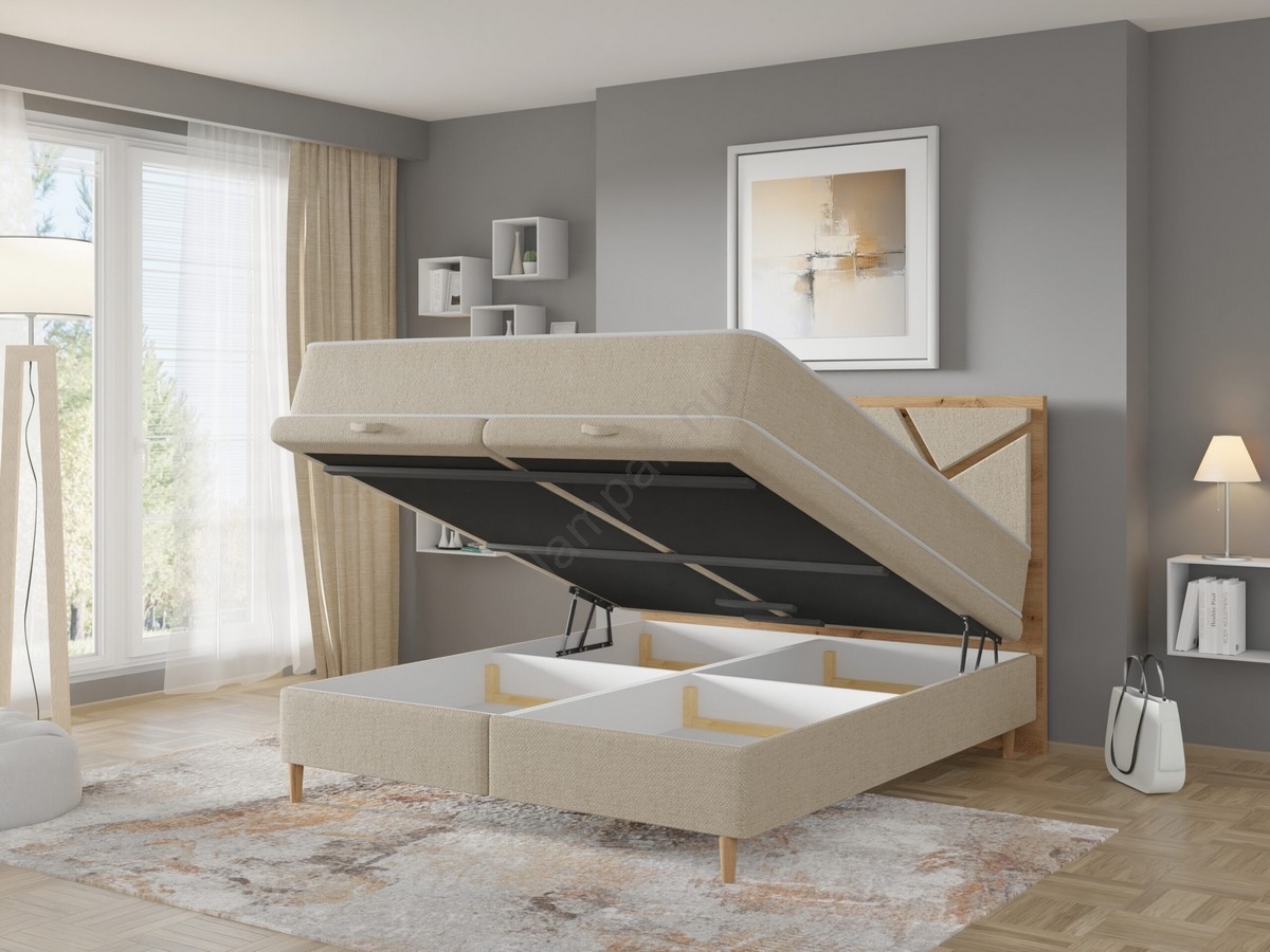 • Az ágy tágas tárolóhellyel rendelkezik az ágyneműk és egyéb tárgyak tárolására.