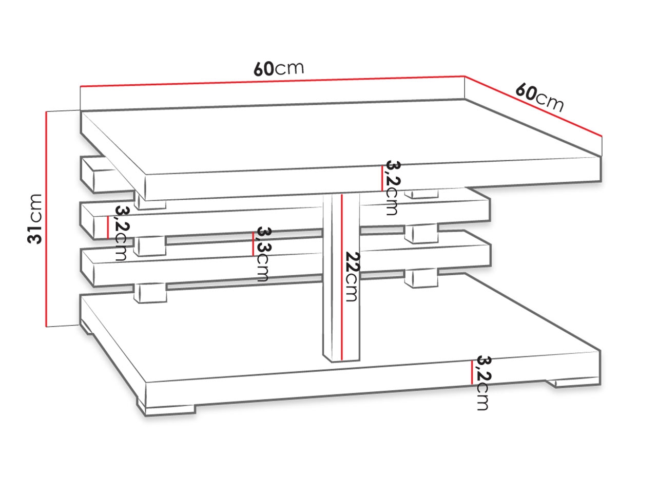 • 32 mm vastag forgácslapból készült.