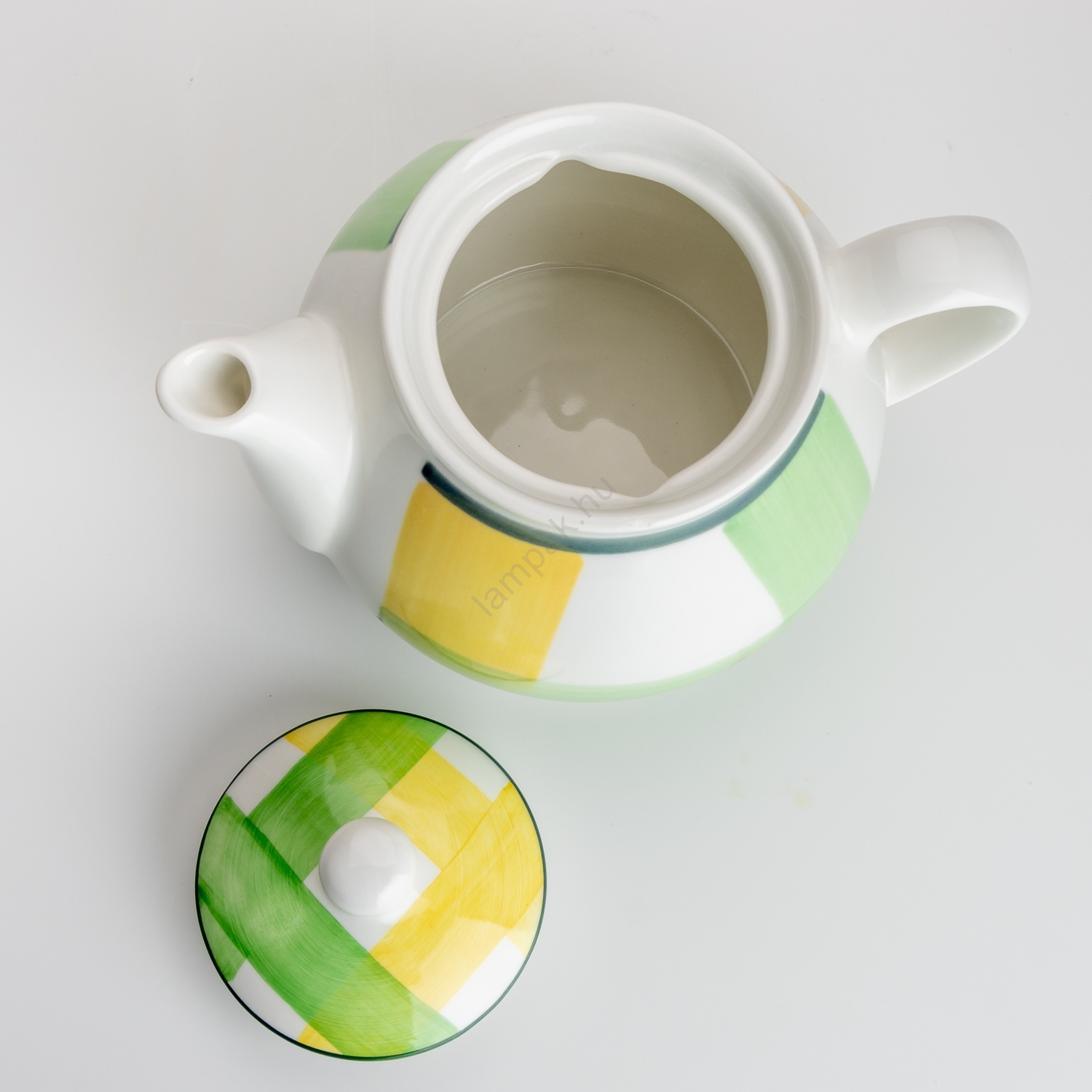 Zöld-sárga kerámia kávéfőző fedővel, Lucie