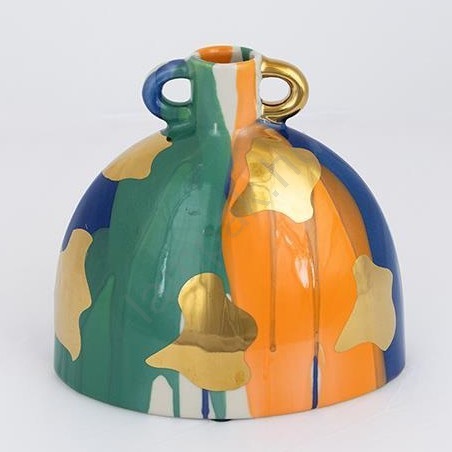 • Az egész váza fényes mázzal van bevonva, amely kiemeli a színek telítettségét és az arany részleteket.
