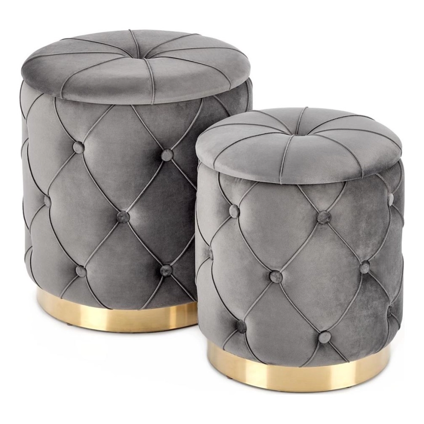 KÉSZLET 2x Taburet POLLY átm. 40/44 cm szürke/arany