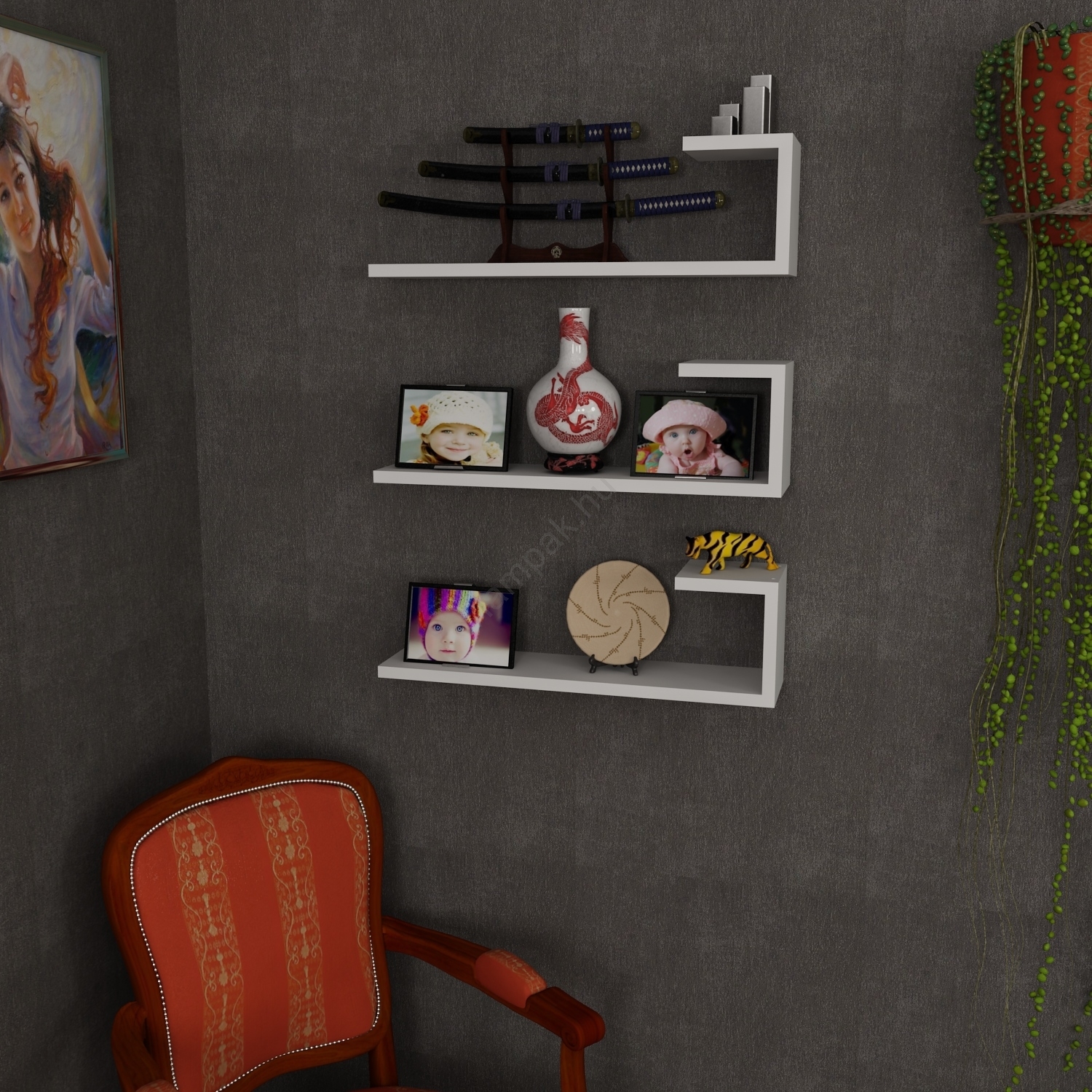 KÉSZLET 3x Fali polc EMILY 18x60 cm fehér