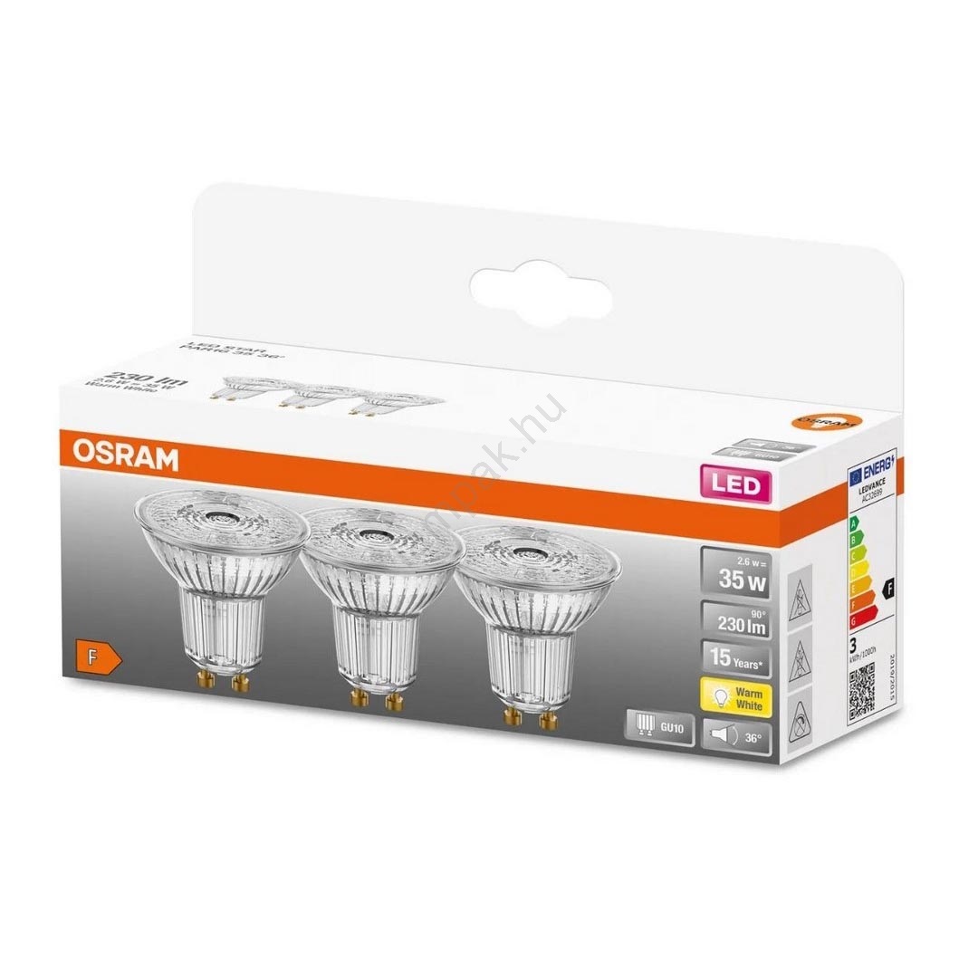 A SZETT 3x LED Izzó PAR16 GU10/2,6W/230V 2700K - Osram A kiváló minőségű dizájn biztosítja a belső tér tökéletes megvilágítását. A GU10 kategória az azonos aljzattal rendelkező izzókra vonatkozik. E-shopunkban választhat hagyományos izzószálas vagy modern LED izzók közül, melyek energiatakarékosabbak és hosszabb élettartamúak.