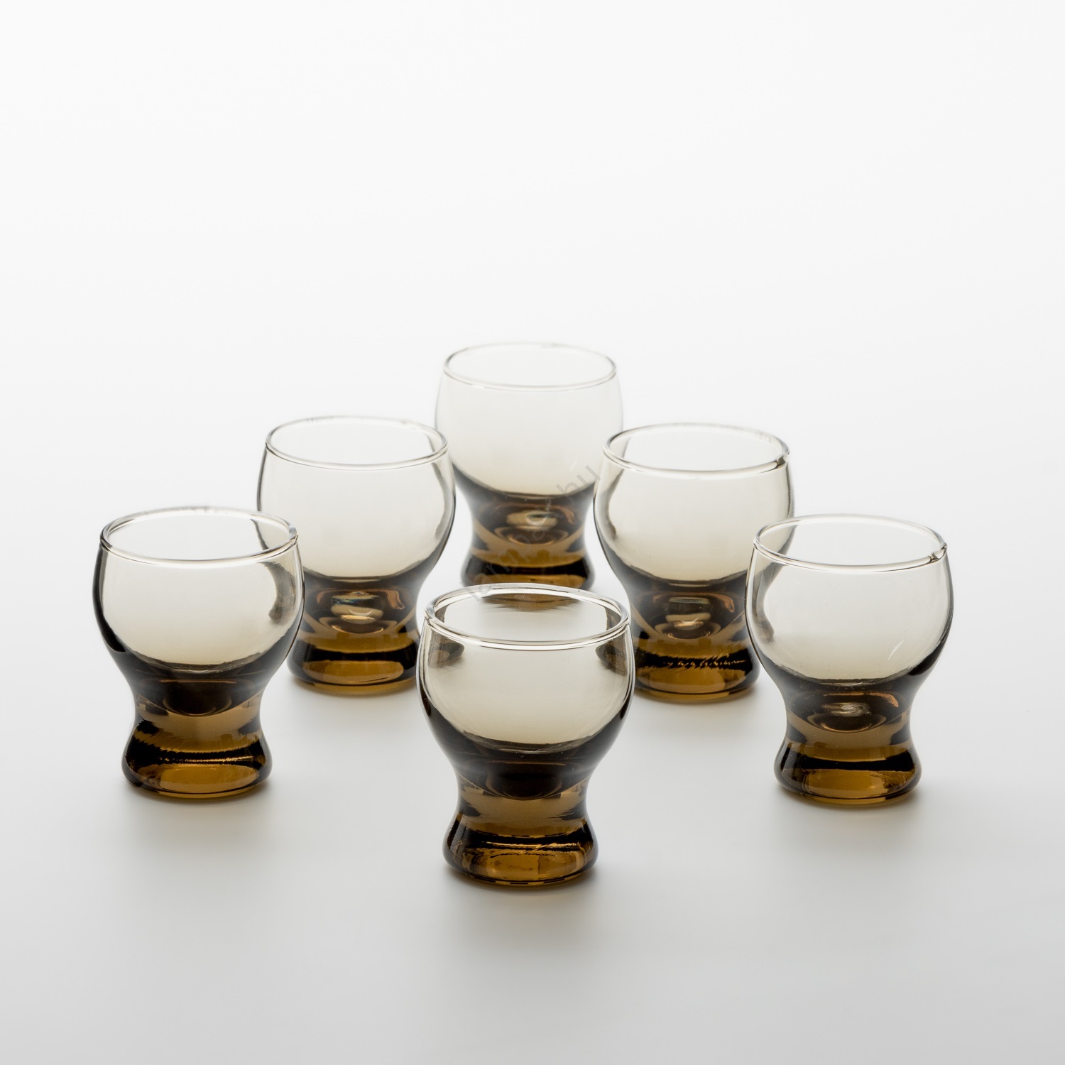 • Likőr vagy más szeszes italok számára alkalmas pohárkészlet, átlátszó, enyhén barna árnyalattal.