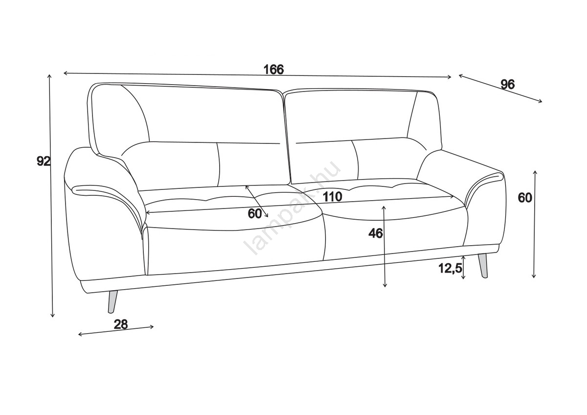 • A kényelmes, 46 cm-es ülésmagasság és 60 cm-es ülésmélység ergonomikus és pihentető ülést biztosít.