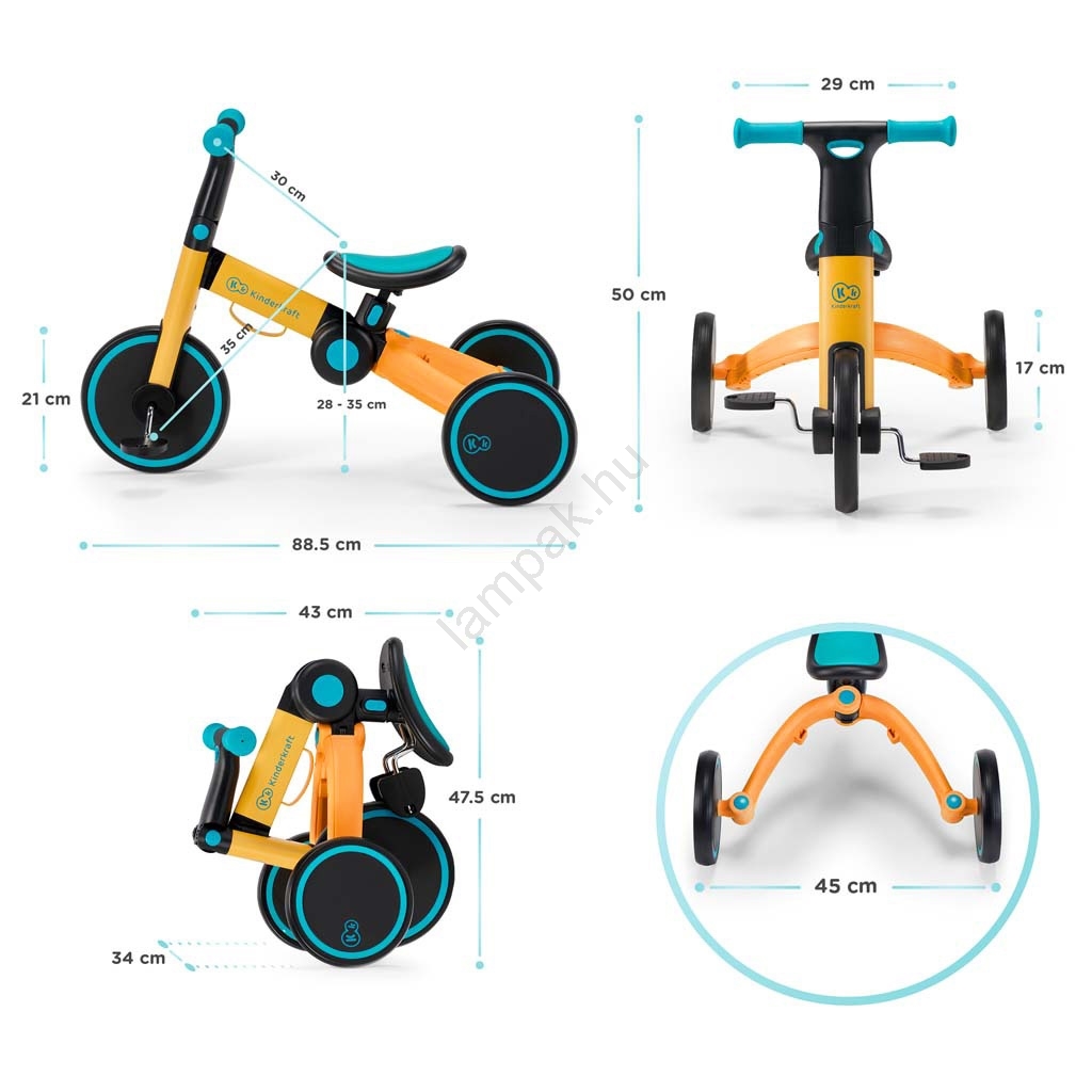 KINDERKRAFT - Gyermek tricikli 3 az 1-ben 4TRIKE sárga/türkiz
