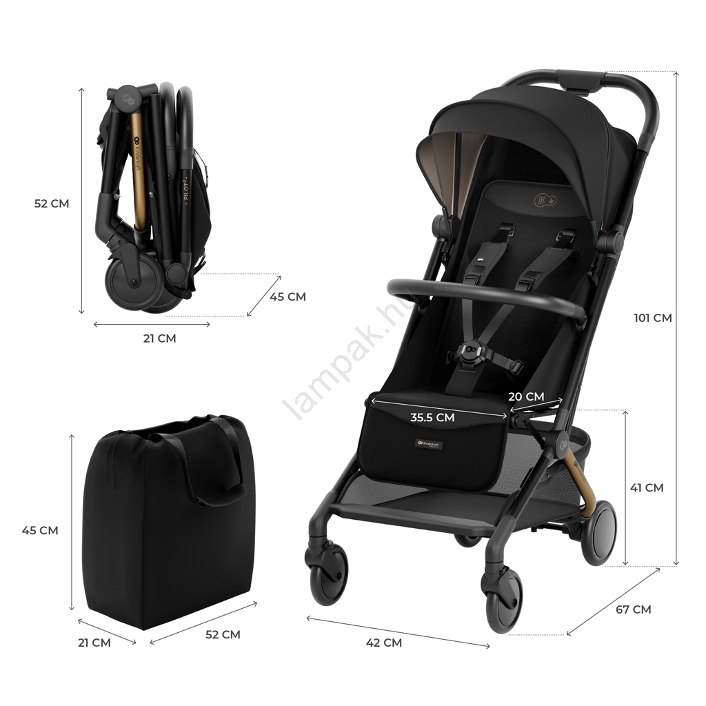 • Összecsukott babakocsi méretei: 45 x 21 x 52 cm.