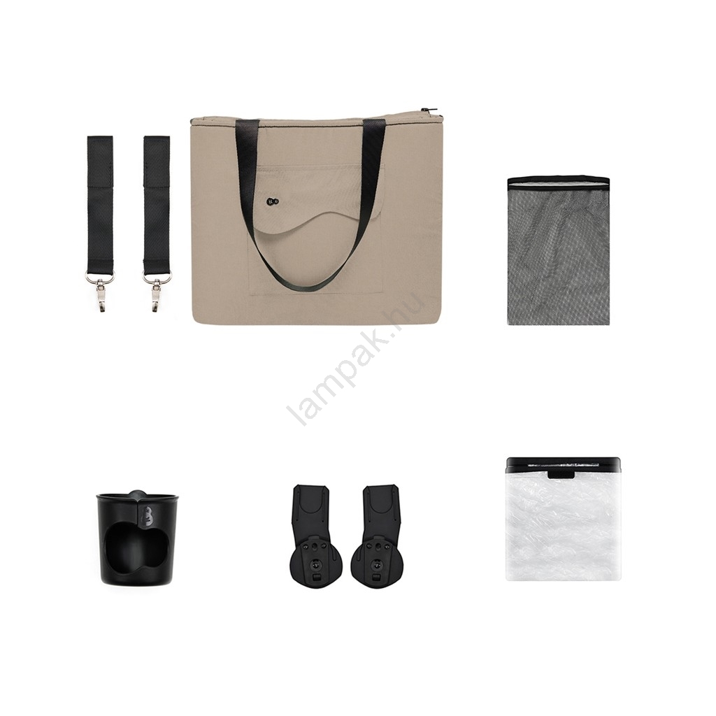 • A babakocsihoz praktikus kiegészítők széles választéka tartozik: szúnyogháló, esőhuzat, italtartó, a fogantyúra rögzíthető szülői táska és autósülés-adapterek.