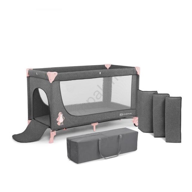 KINDERKRAFT - JOY utazóágy szürke-rózsaszín