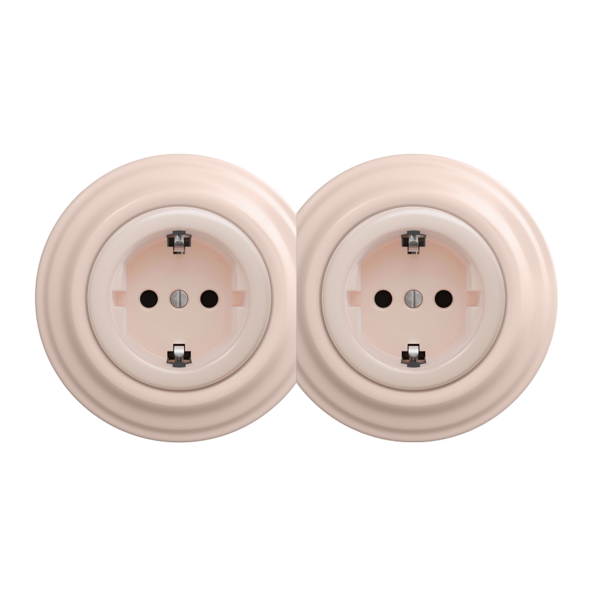Kliklap - Dupla retro otthoni fali aljzat kerettel SCHUKO 230V/16A antik rózsaszín