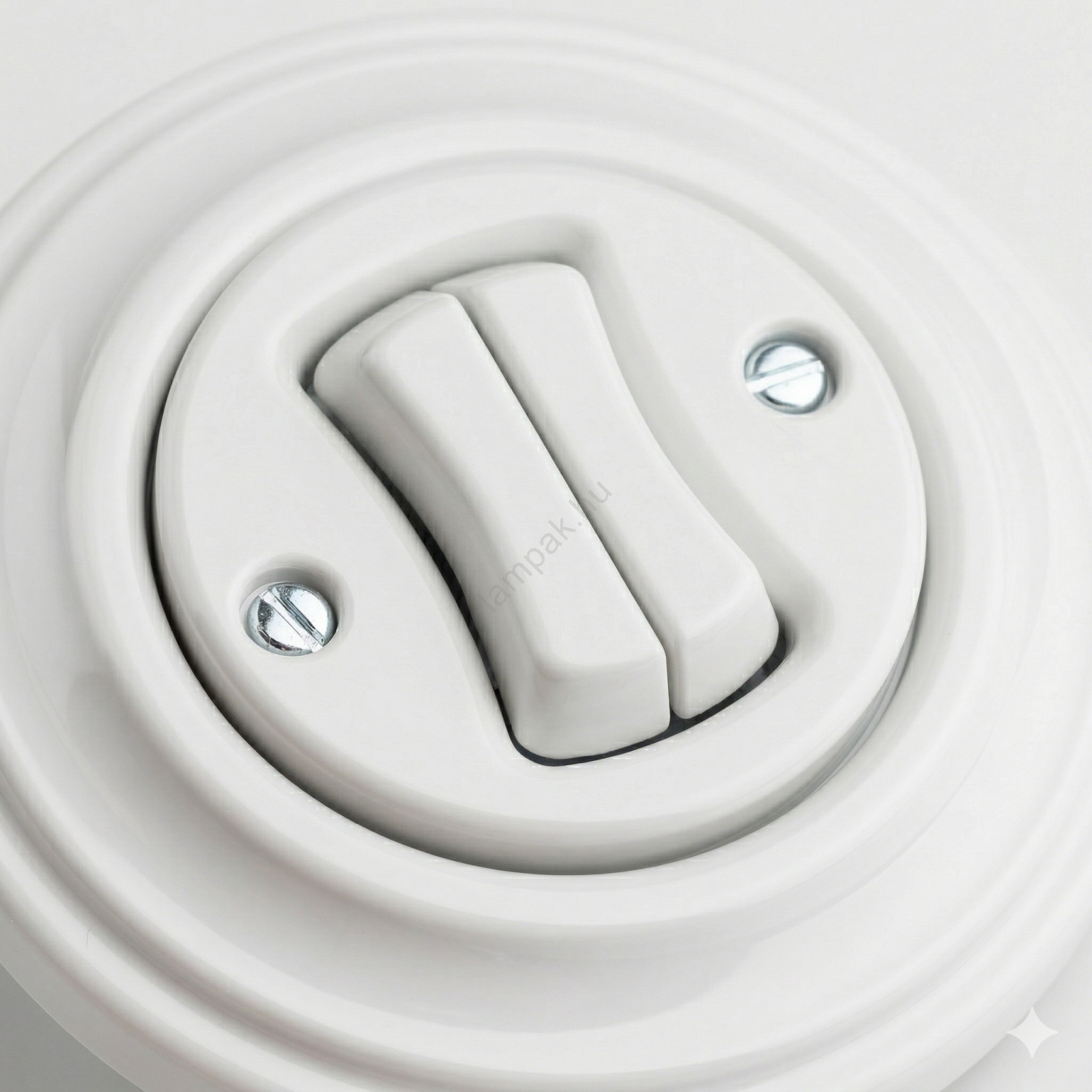 • Kliklap - Retro kétgombos kapcsoló kerámia kerettel, elegáns fehér kivitel