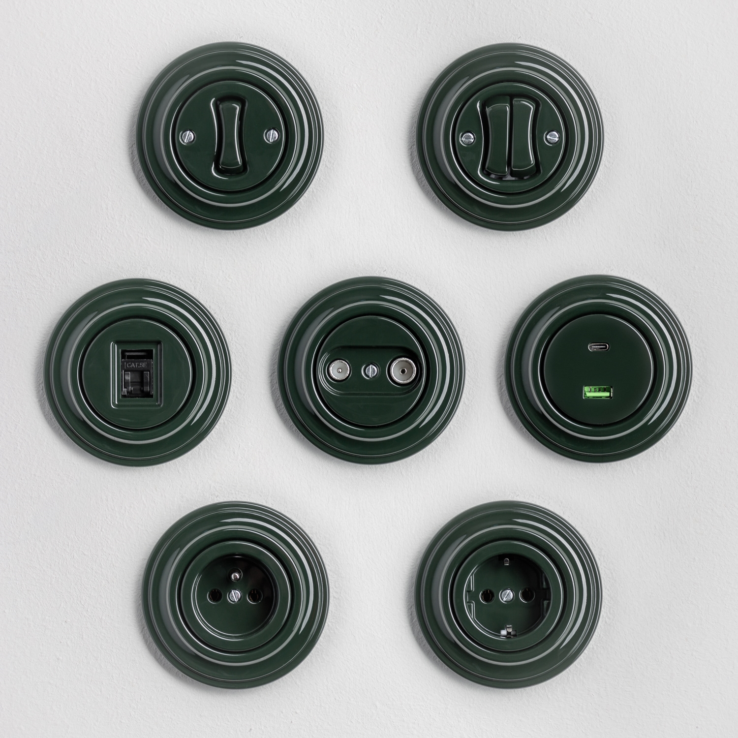 • Kliklap - Retro egypólusú kapcsoló, 1-es kerettel, zöld