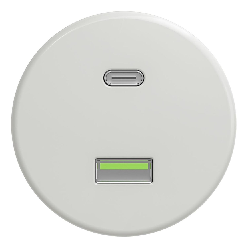 • Kliklap - Retro USB aljzat A+C, keret nélküli, fehér kerámia