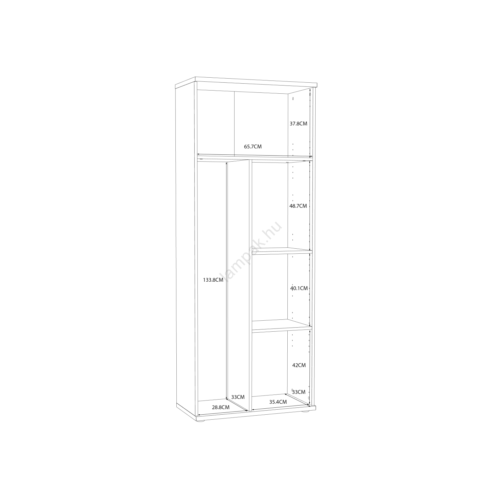 • A polcok bőséges tárolóhelyet kínálnak a mindennapi használati tárgyak rendszerezéséhez.